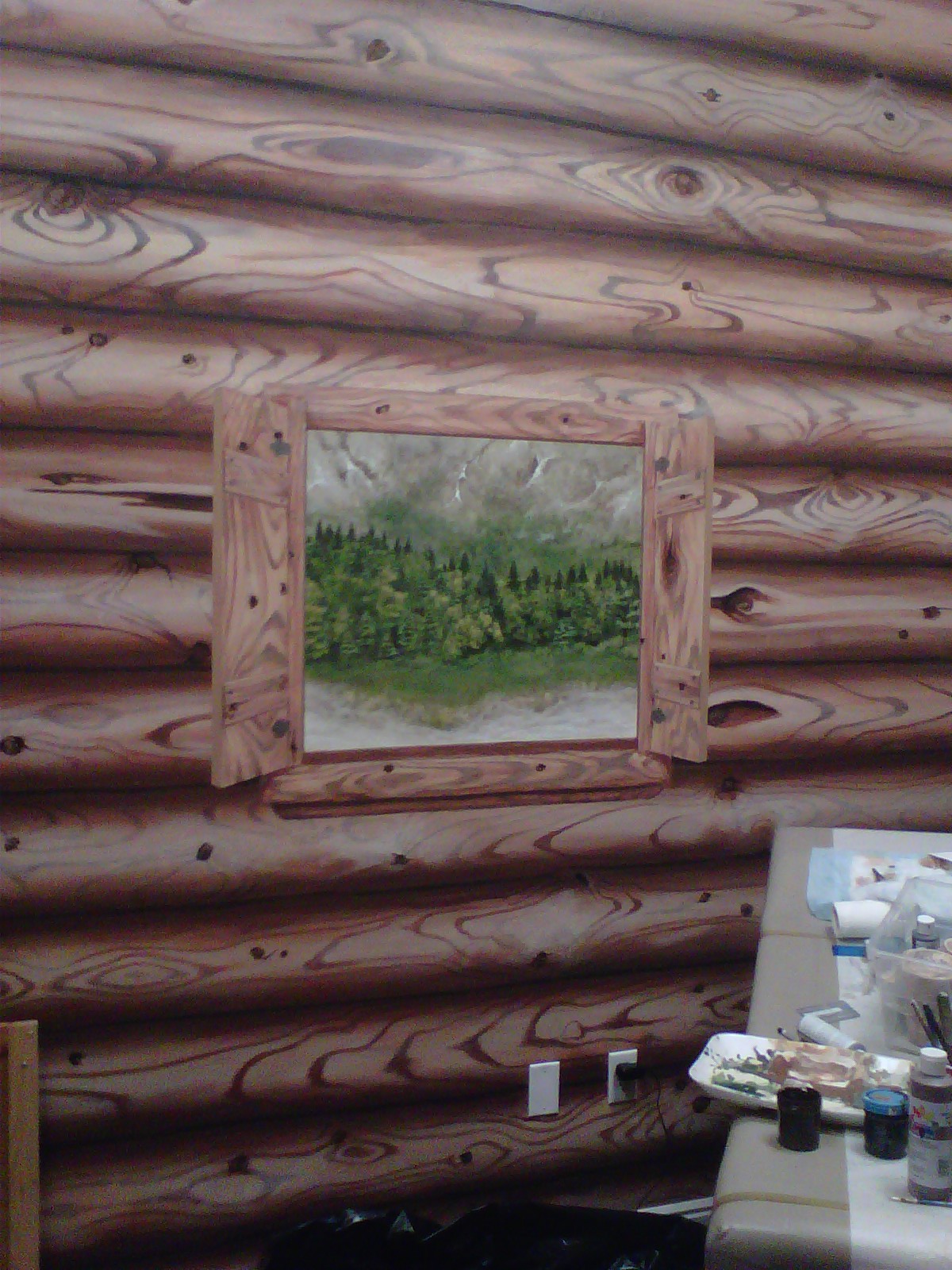 This log cabin mural was started on 10-28-2012 for a local medical clinic in Cedar City Utah. This project took just over 300 hours total to complete. The pictures below are displayed by the North, West, East, and South walls. In each group they are displayed in chronological order.